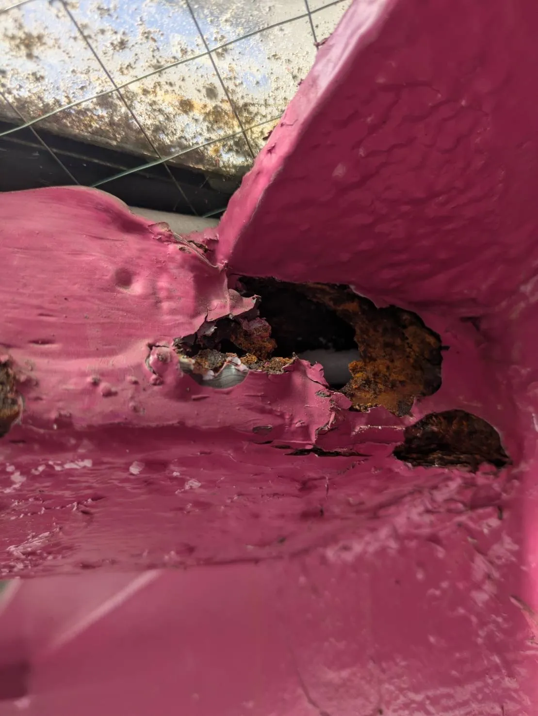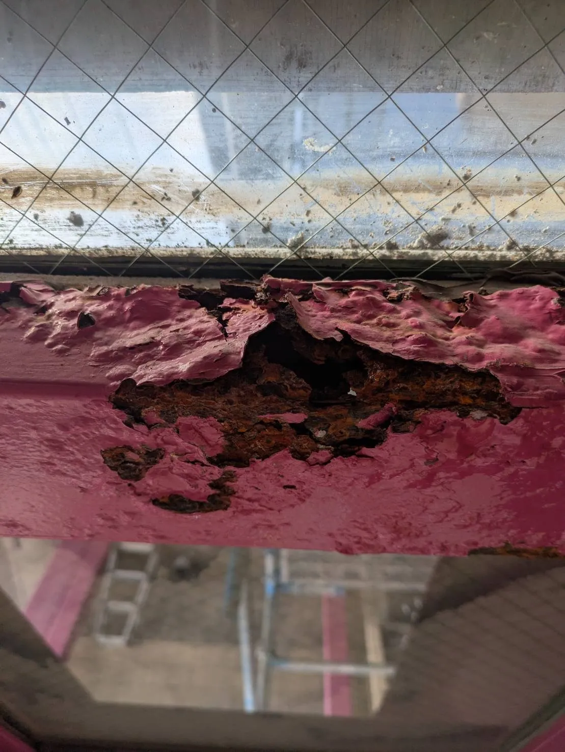この場合は部分的に切断撤去して、下地の補強を入れて溶接します。