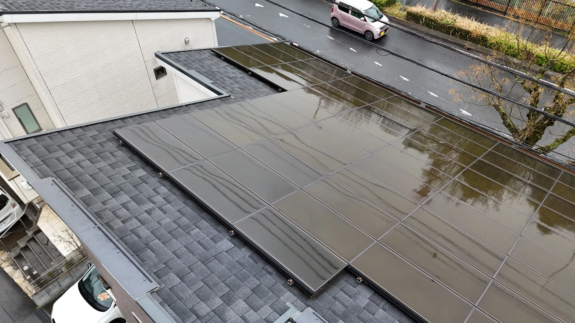 所沢市で外壁塗装の調査 所沢市で外壁塗装と屋根の無料ドローン調査を行いました。屋根はアスファルトシングルで綺麗な状態で水弾きも良さそうなので塗装の心配はなさそうでした。因みにアスファルトシングルは油性での塗装はNG…