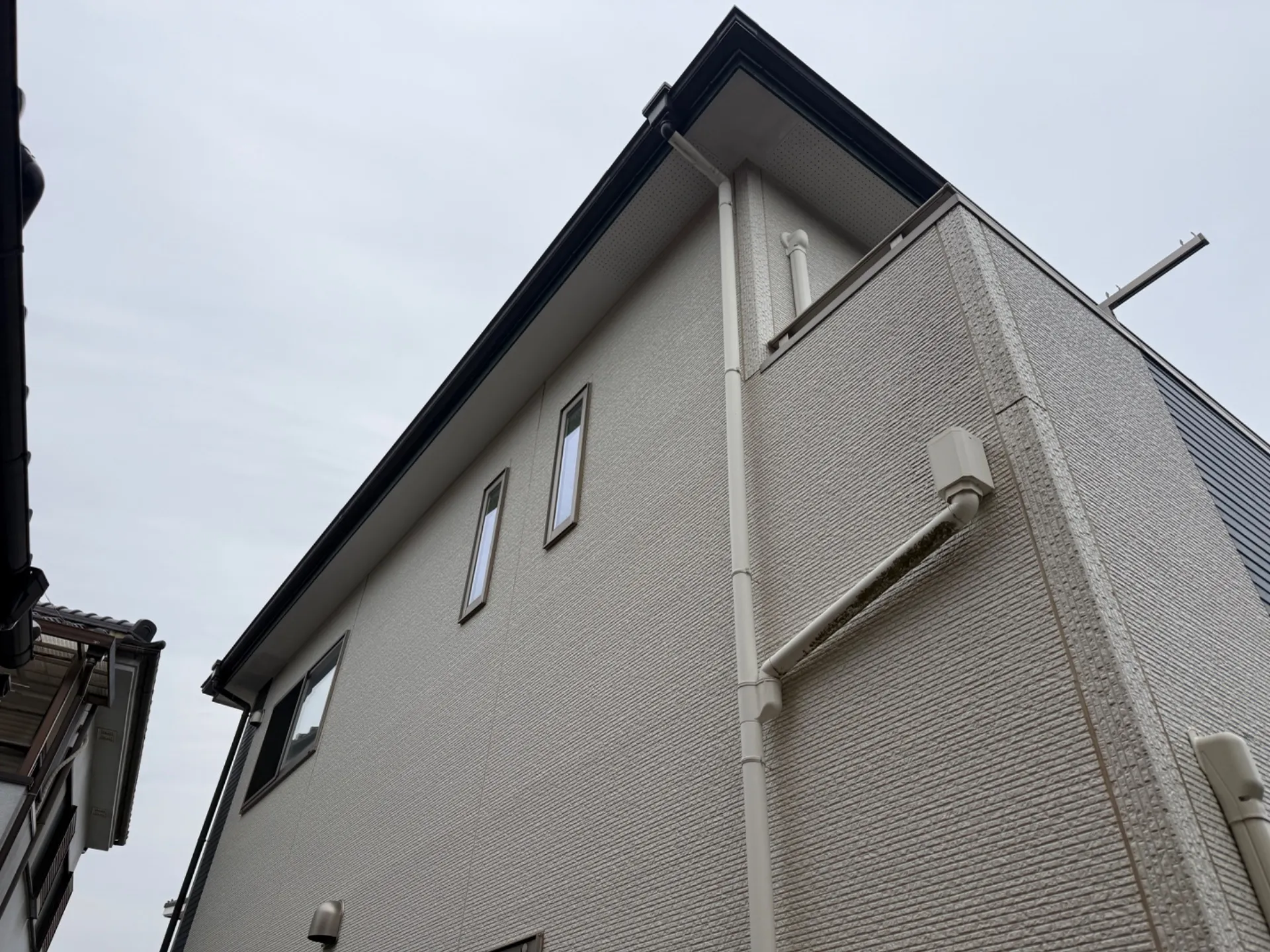 川越市で外装調査で雨樋の塗装について 川越市で外装調査を行い、雨樋の剥離後の塗装について考えてみました。このように何度か塗装しているお家はこのような写真のように剥がれた後の塗装がはっきり分かる状態があると思います。職人川の気持…